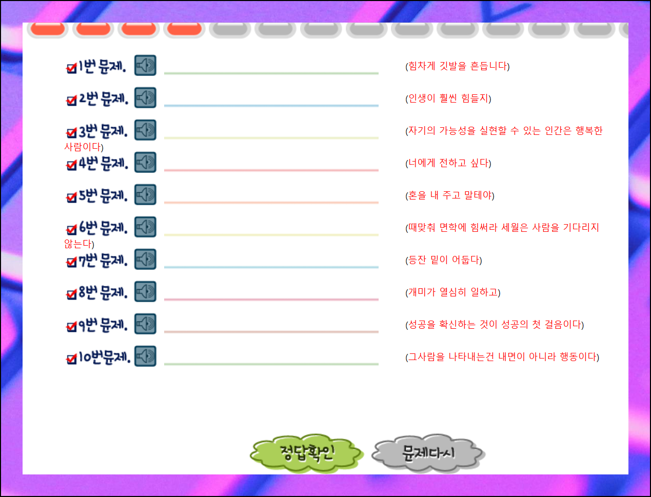 낱말 훈련이 익숙해지면 문장 실습에 도전해보세요. 처음에는 어렵게 느껴질 수 있지만, 계속 진행하다 보면 재미를 느끼게 됩니다.