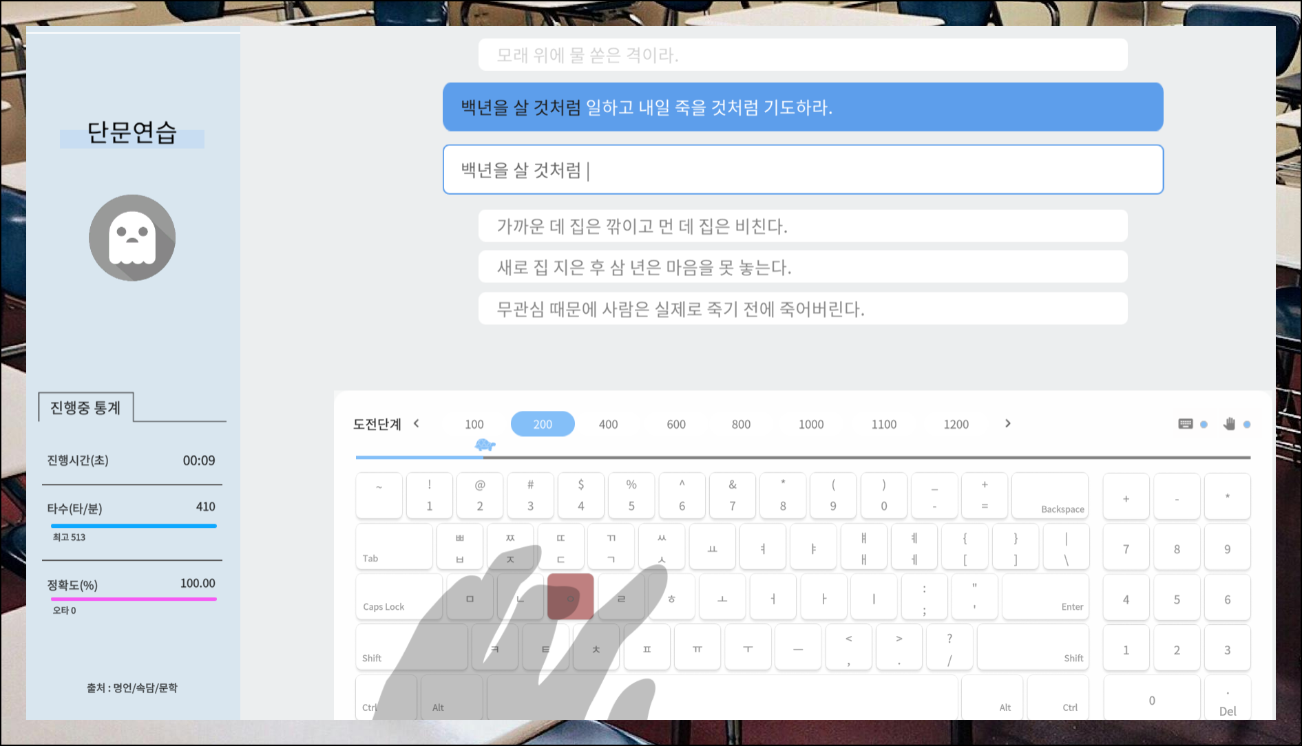 최고 난이도인 긴 글 입력 단계입니다. 장시간 집중력을 유지하면서 키보드를 두드려야 하는 가장 힘든 과정이에요. 하지만 두려워할 필요는 전혀 없어요.