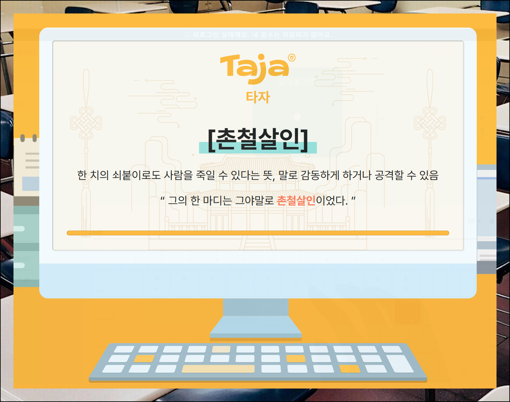 키보드 사용에 완전히 익숙하지 않은 사람도 충분히 재미있게 즐길 수 있습니다. 화면에 등장하는 한글 자음과 모음을 확인하고 맞는 키를 누르면 됩니다.