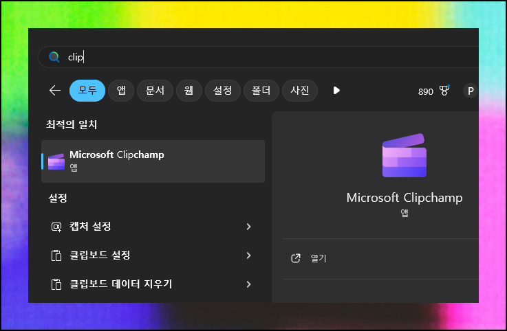 윈도우에 기본으로 설치되어 있다고 했지만, 없는 경우도 있어요. 그럴 때는 마이크로소프트 스토어에서 무료로 받으면 됩니다. 윈도우 화면 왼쪽 아래 시작 버튼을 누르고 "클립챔프"를 타이핑해보세요. 소프트웨어가 보이면 클릭해서 열어주면 되거든요.