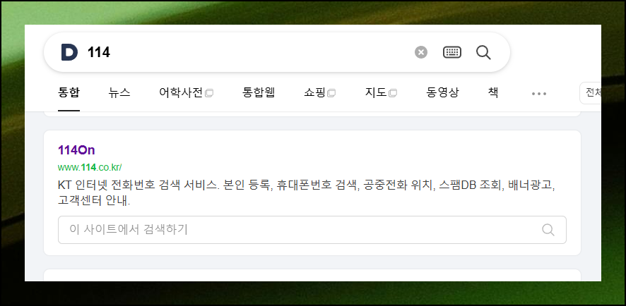 114On 웹사이트에 접속해보세요. 누구나 무료로 이용할 수 있는 서비스입니다. 메인 화면 상단에 보면 다양한 조회 옵션이 있어요. 지역명, 회사명, 업종분류, 전화번호 등으로 확인이 가능합니다.