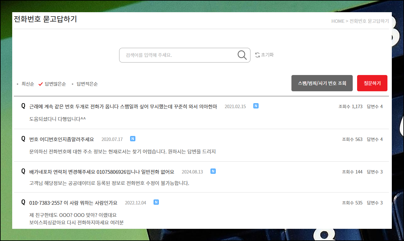 사용자들의 풍부한 경험과 지식이 공유되는 공간이라서 의심스러운 연락처에 대한 생생한 내용을 얻을 수 있어요.
