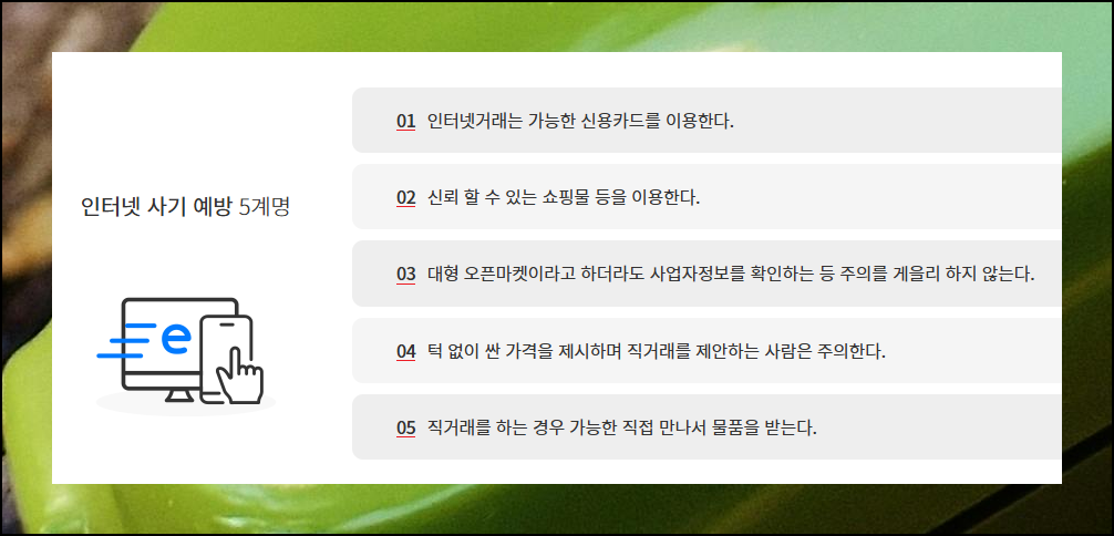 이럴 때 미리 준비하여 충분히 예방하는 방법이 있습니다. 인터넷 사기를 막는 기본 원칙을 익히면 되는데요. 이를 통해 대부분의 피해를 막을 수 있을 거에요.