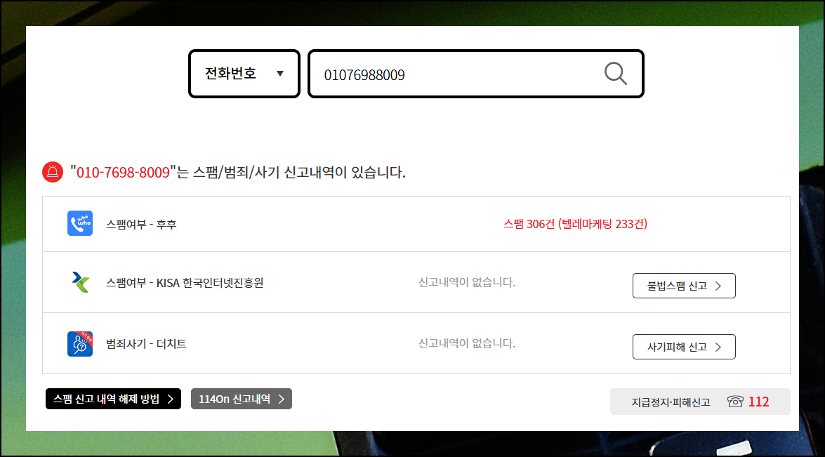 무료로 제공되는 온라인 검색 시스템을 통해 해당 번호가 스팸이나 사기에 관련이 있는지 즉시 확인할 수 있습니다. 전화번호에 대한 정보가 나오지 않을 때에는 다른 사용자들이 남긴 신고 내역과 후기를 통해서 알아내는 것도 가능해요.