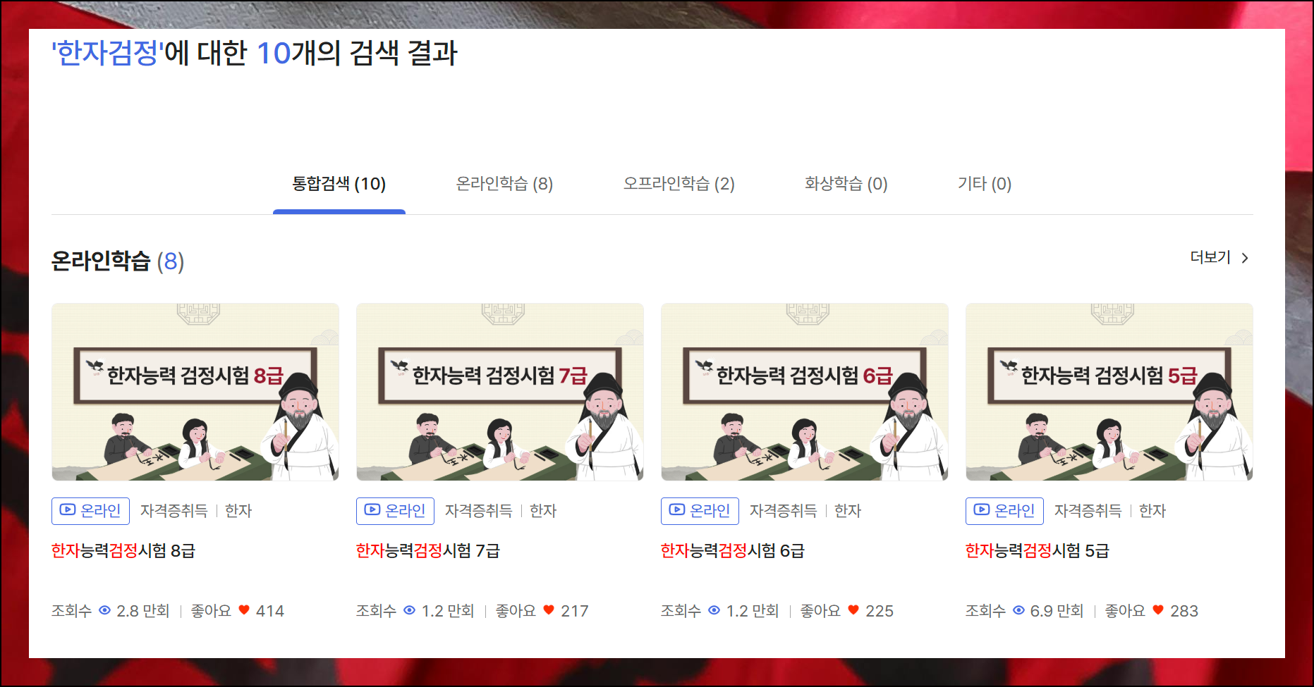 경기도 지식 사이트 메인 화면에서 우측 상단의 검색 기능을 이용하세요. "한자검정"이라고 키워드를 입력하면 관련 강의들이 바로 나타날 거예요. 찾는 과정이 복잡하지 않으니까 누구나 쉽게 접근할 수 있어요.