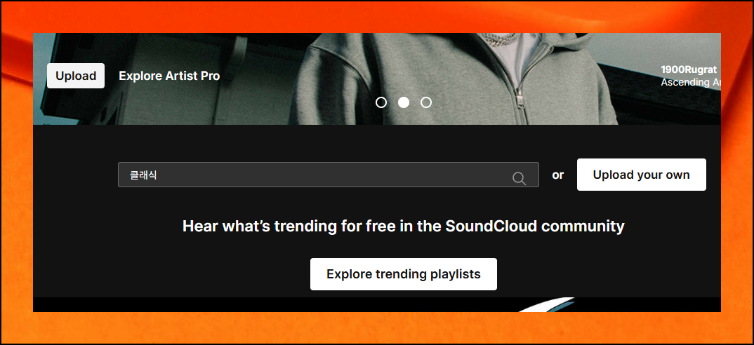 바로 사운드클라우드라는 서비스인데요. 이곳에서는 국내외 다양한 mp3 음원을 무료로 만날 수 있습니다. 검색을 통해 공식 홈페이지를 검색해서 접속해주세요.