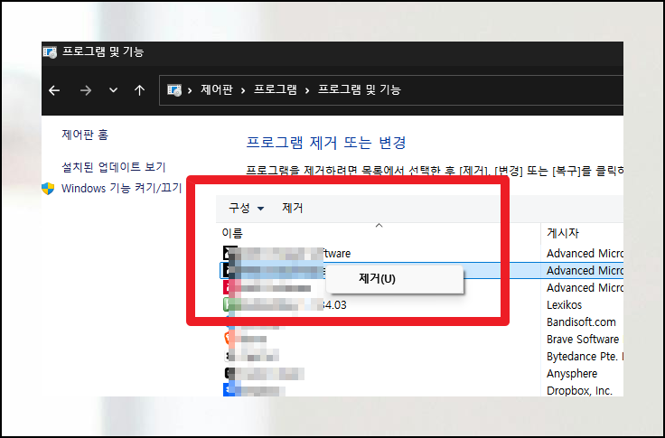 (2) 관련 프로그램 삭제하기