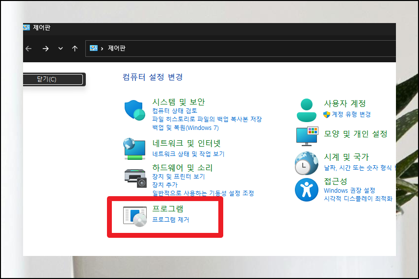 제어판 메인 화면이 열리면 여러 설정 항목들이 보일 텐데요. "컴퓨터 설정 변경" 카테고리에서 "프로그램 제거" 항목을 찾아 클릭하세요. 컴퓨터에 설치된 모든 소프트웨어 목록이 화면에 나타납니다.