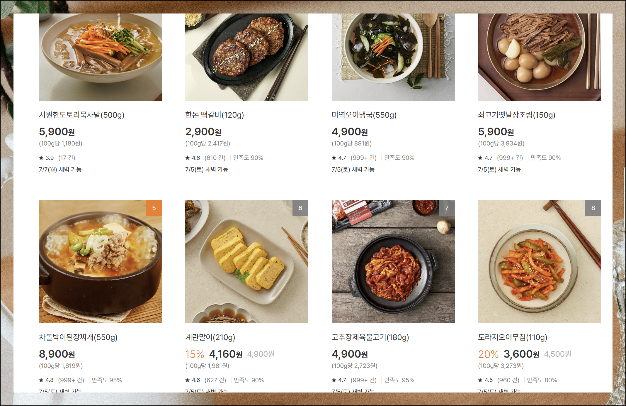 우리 가족은 밑반찬을 구매해서 먹고 있어요. 처음부터 그랬던 건 아니었는데, 가족 구성원이 적다 보니 요리를 한 번에 많이 하면 여러 문제가 발생했거든요. 음식을 다 먹지 못해서 상하는 경우가 자주 있었어요. 그렇다고 조금씩 만들려고 하니 재료비가 더 많이 들고, 음식을 자주 만들어야 해서 정말 힘들더라고요. 그래서 온라인 사이트를 활용하게 되었는데요. 이 사이트에는 웬만한 요리 종류를 다 찾아볼 수 있어요. 여기서 추천할 만한 10가지를 소개해 드릴게요.
