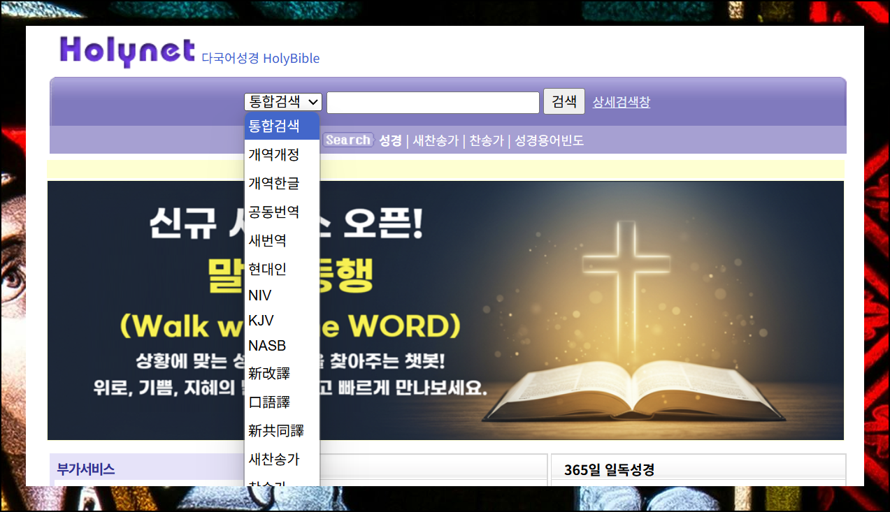통합검색 기능을 사용하면 정말 유용해요. 하나의 구절을 여러 번역본에서 동시에 검색해서 결과를 보여줍니다. 같은 말씀이라도 번역에 따라 어떻게 다르게 표현되는지 쉽게 비교할 수 있어요. 말씀을 깊이 있게 공부하고 싶을 때 특히 도움이 됩니다.