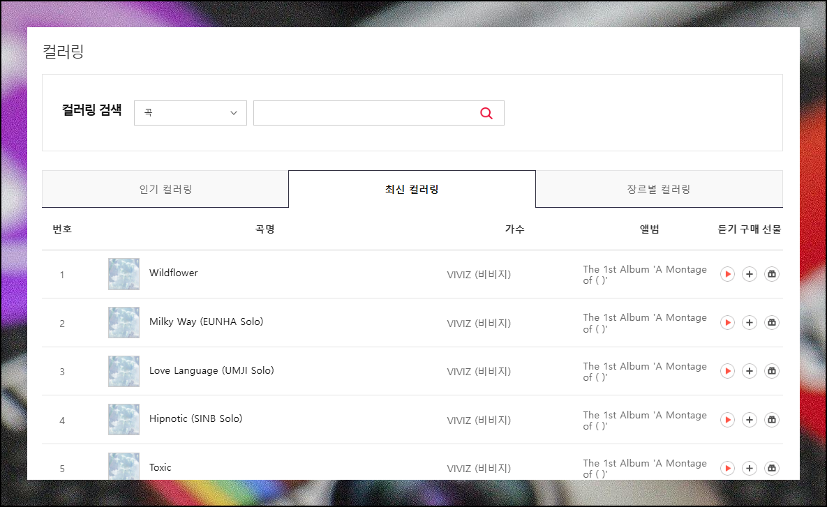 컬러링 노래 추천 순위 안내, 검색이나 다운로드 가능