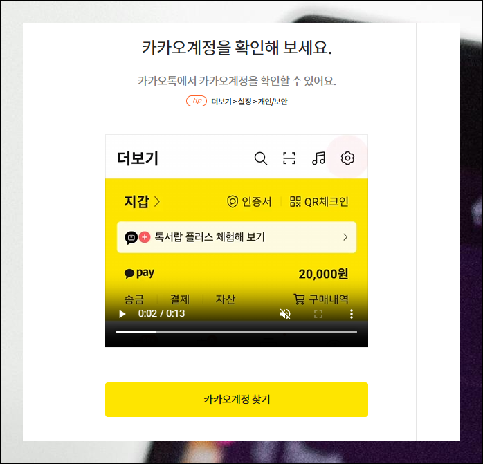 시스템 안내에 따라 카카오 인증서나 휴대폰을 활용하세요. 닉네임이나 실명과 전화번호를 통해서도 계정을 확인할 수 있습니다. 계정과 비밀번호를 찾은 후에는 처음 설명해 드린 방법 중 카카오 기준으로 알려드린 이메일 주소 찾는법을 진행하면 됩니다.