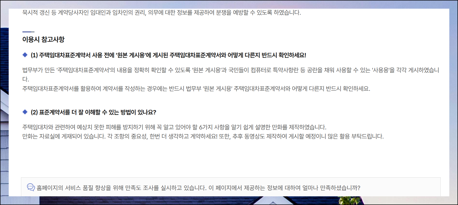 파일을 받았던 사이트를 다시 보면 서식을 사용할 때 참고하면 좋은 정보들이 정리되어 있어요. 자료실에는 예기치 못한 손해를 예방하기 위해 알아두어야 할 내용을 쉽게 설명한 만화 자료도 준비되어 있습니다. 부동산 관련 업무를 처리할 때 이런 자료를 미리 읽어보시면 도움이 될 거예요.
