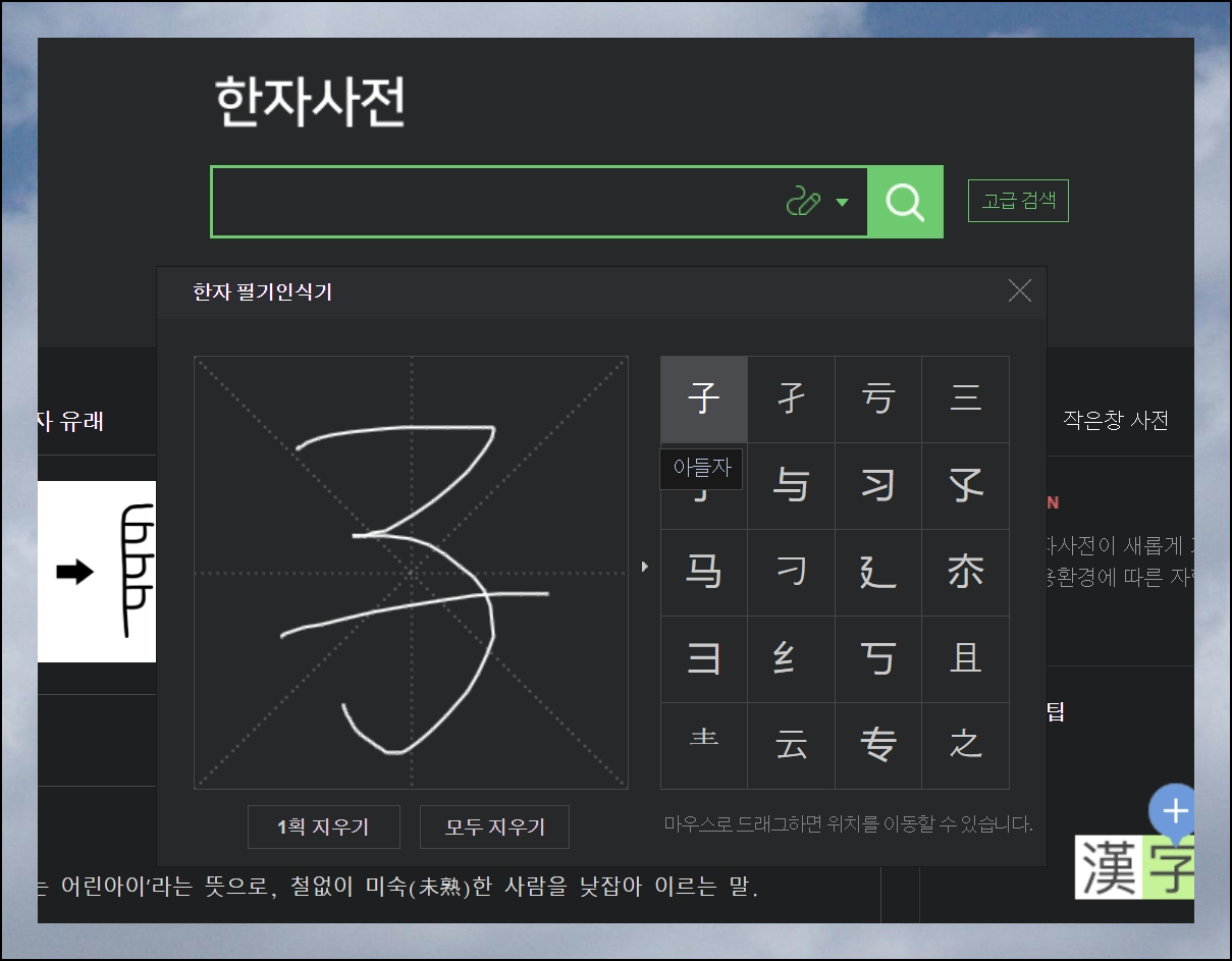 무료한문 번역기 활용법, 필기인식으로 바로찾기
