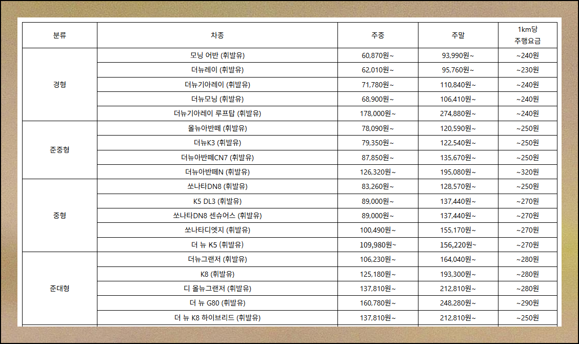 차량 단기렌트비용 요금 비교하기