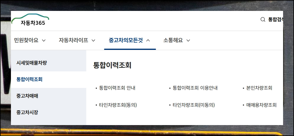 이력조회 버튼을 눌러보시면 새로운 화면이 나타나요. 매매 안내서와 각종 서비스들을 소개하는 페이지를 확인할 수 있습니다. 번호판으로 검색하고 싶다면 이력 분야를 선택하면 되어요. 자동차의 감춰진 과거를 명확하게 들여다볼 수 있는 통로 역할을 합니다.