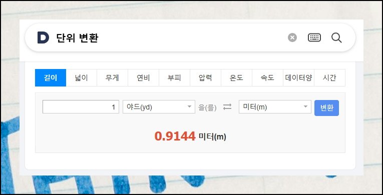 웹에서 제공하는 길이 환산 프로그램을 활용해보겠습니다. 포털사이트 검색창에 "단위 변환"이라고 입력하면 바로 해당 서비스가 나타나요. 별도의 프로그램 설치나 복잡한 회원가입 절차 없이 즉시 이용 가능한 게 가장 큰 장점입니다. 1야드는 몇미터에 해당하는지 알아보는 것은 물론이고, 야드 앞의 숫자가 달라질 때마다 몇미터에 해당하는지 바로 알 수 있어요.