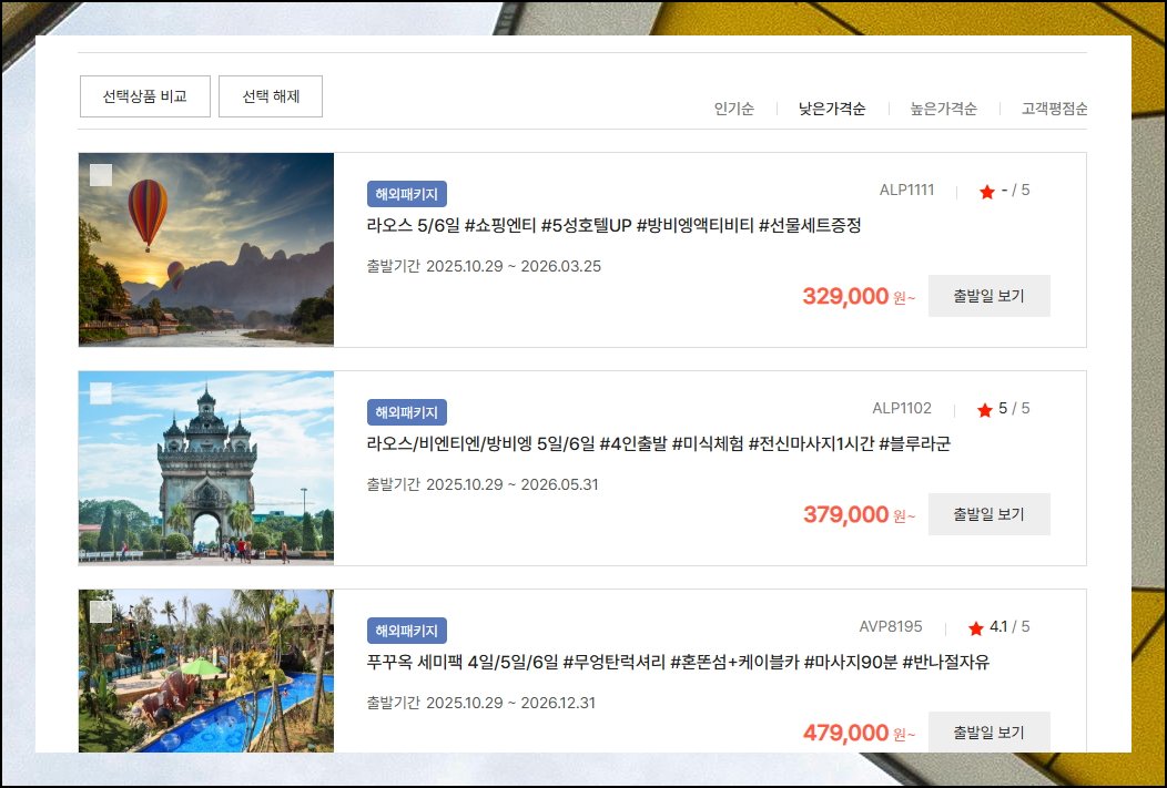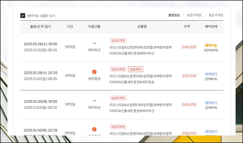출발일과 돌아오는 날이 표 형태로 정리되어 있습니다. 처음에는 날짜 기준으로 살펴봤는데 재미있는 사실을 발견했어요. 임박했다고 해서 반드시 저렴한 건 아니더라고요. 최대한 적은 비용으로 가고 싶다면 낮은가격순 정렬을 활용해보세요. 노랑풍선 홈페이지에서 제공하는 긴급모객 상품은 날짜마다 포함 내용이 조금씩 다를 수 있으니 상세 정보를 꼼꼼히 확인하는 게 중요합니다. 가격 경쟁력이 뛰어나서 예약 마감이 빠르게 진행되는 편이거든요. 홈페이지를 자주 방문해서 새로운 혜택을 찾아보는 게 핵심이에요.