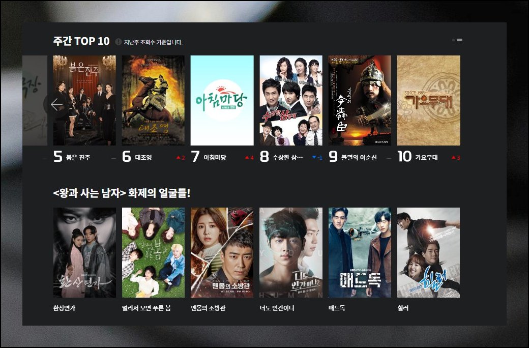 무료 제공 타이틀 가운데 인기 순위를 먼저 확인해 보세요. 꾸준히 회자되는 클래식과 최근 막을 내린 드라마가 나란히 올라와 있습니다. 어떤 것을 골라도 빠져들 수밖에 없는 퀄리티예요. 때를 놓쳐 그냥 지나쳤던 작품도 클릭하면 바로 보기 시작됩니다.