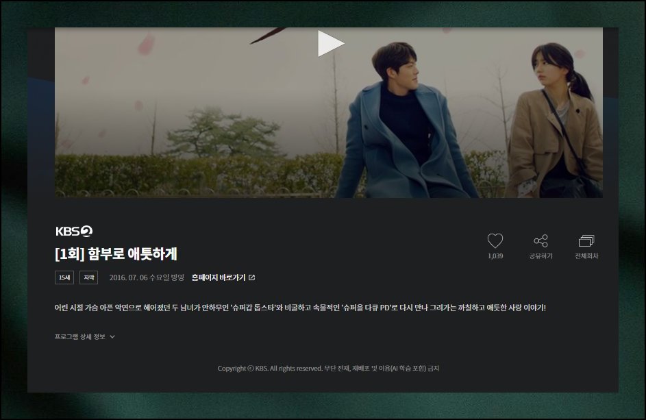 연재 중이든 완결작이든 이전 회차 다시 보기 서비스를 운영하고 있습니다. 중간에 건너뛴 분량이 있다면 여기서 찾아 무료로 틀어보세요. tv 방송을 끊김 없이 이어갈 수 있어요.