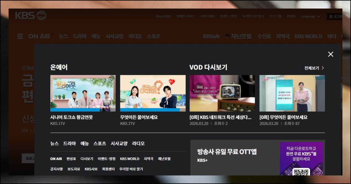 | KBS1실시간 방송보기 (여러채널 무료) (0) | 2024.06.26 |