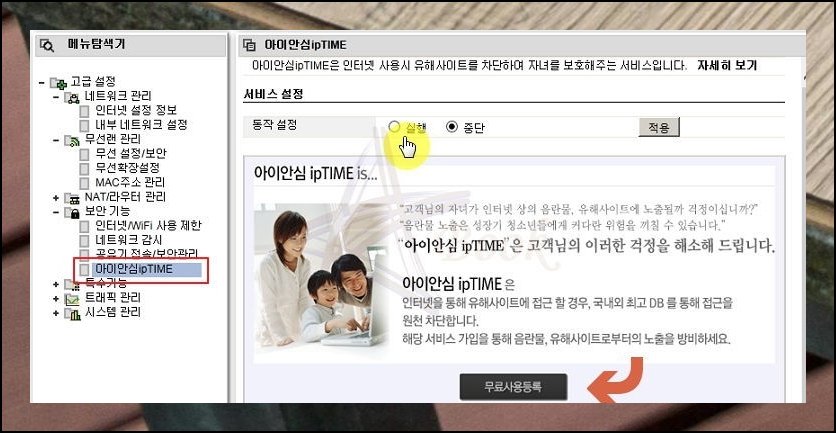 아이들의 인터넷 이용을 통제하려고 비밀번호를 거는 거라면 아이안심 메뉴가 딱 맞습니다. 복잡한 조작 없이도 손쉽게 제한을 걸어둘 수 있어요.