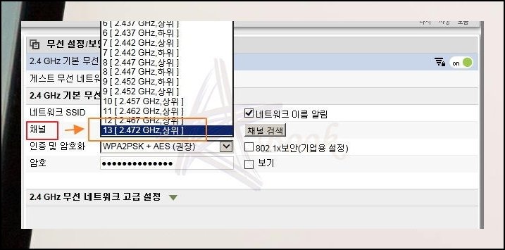 설정을 마쳤는데도 체감 속도가 떨어진다면 주파수 채널을 다른 번호로 옮겨보세요. 접속자가 몰리지 않는 번호를 택하는 게 핵심이에요. 제 경우에는 13번을 골라 쓰고 있습니다.