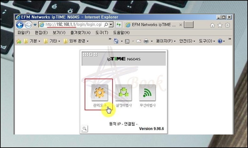 웹 브라우저 하나면 iptime 관리 페이지를 열 수 있어요. 상단 주소 입력란에 제조사가 지정한 접속 경로를 치면 곧바로 연결됩니다. 이곳에서 원하는 대로 비밀번호를 잡아줄 수 있습니다.