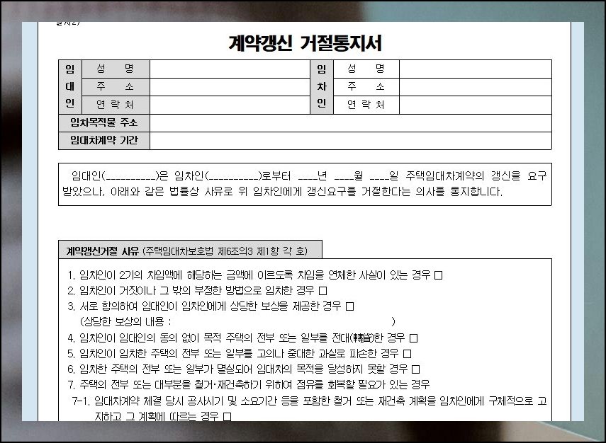 (7) 갱신 거절 통지서도 함께 준비