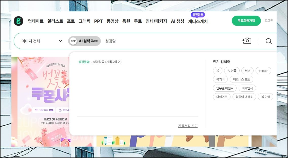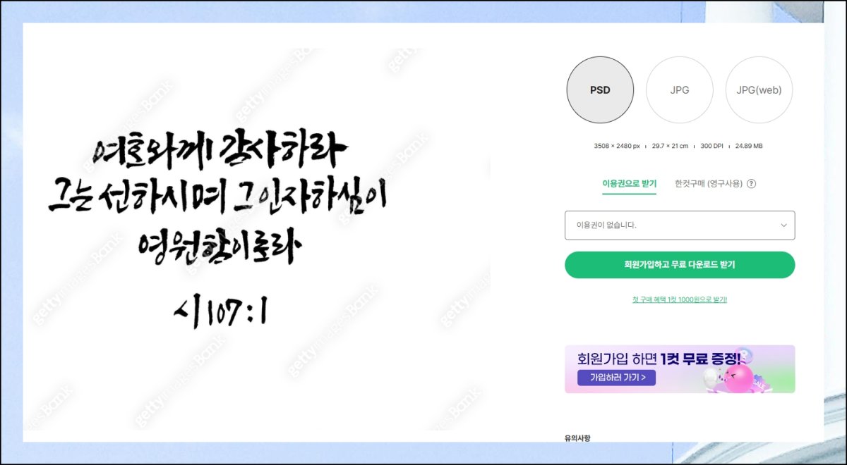 게티이미지뱅크라는 플랫폼에서는 각종 사진 소스와 그래픽 자료를 받아볼 수 있습니다. 축적된 콘텐츠 규모가 상당해서 성경말씀 같은 주제를 검색란에 넣기만 하면 적합한 이미지가 바로 나타나요.