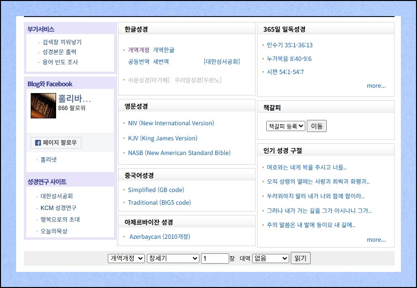 홀리 바이블 웹사이트를 이용하면 국문 성경말씀뿐 아니라 영문 번역본까지 함께 열람 가능해요. 본문을 천천히 훑으며 와닿는 구절을 직접 골라 보는 것도 의미 있습니다. 여유가 넉넉하지 않다면 페이지 우측 아래에 마련된 인기 구절 코너를 참고하세요.