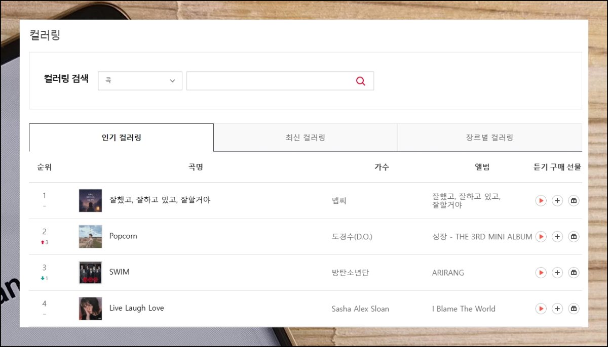 조회를 실행하면 인기곡뿐 아니라 신곡이나 카테고리별 랭킹까지 한눈에 파악 가능합니다. 머릿속에 떠오르는 아티스트나 곡명이 있으면 위쪽 검색란에 직접 타이핑해 즉시 결과를 받아볼 수도 있어요. 핸드폰 대기음 바꾸는법을 찾는 분이라면 이 탐색 기능을 적극 활용해 보세요.