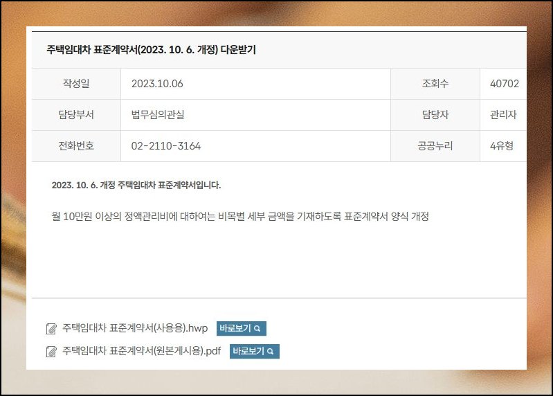 2023년 10월 6일에 개정된 표준 임대차 양식부터는 짚고 넘어갈 굵직한 변화가 자리잡았어요. 한 달에 십만원 선을 넘기는 정액관리비라면 어떤 비목으로 얼마가 들어가는지를 일일이 풀어 적어 두는 일이 의무로 굳어졌습니다. 임대 거래는 결코 적잖은 자금이 오가는 약속이지요. 그러니 손질된 부분을 본인이 직접 하나하나 점검해 보고, 계약서에 항목을 채워 넣을 때 어느 한 군데도 빠뜨리지 않게 옮겨 담아야 합니다. hwp 서식 안내를 확실히 머리에 새겨 두면 훗날 불거질 시비를 사전에 막을 수 있어요.