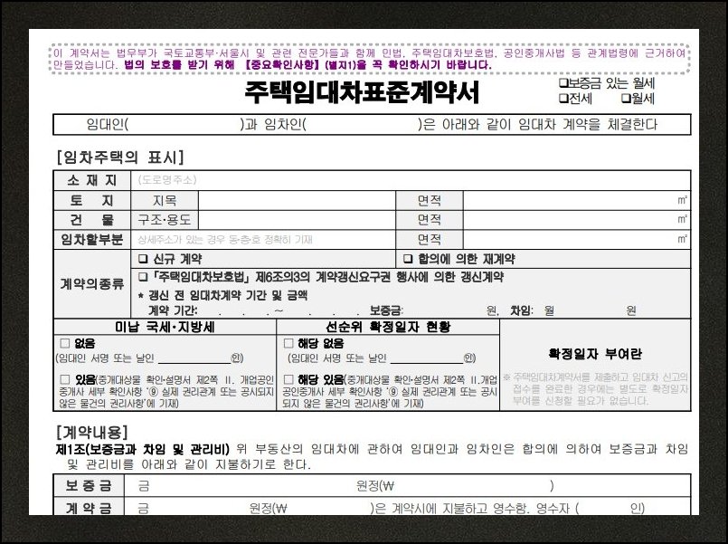 주택 관련 제도가 손질되면 임대차 표준 서식 모양새도 함께 변하기 마련입니다. 보증금만 걸린 전세, 일반 월세, 보증금이 더해진 월세 어느 쪽으로 약속을 맺든 가장 따끈한 판본을 활용해야 안전해요. 지금 시점 기준으로 새로 다듬어진 본을 함께 올려 두었으니 비용 부담 없이 가져다 쓰시면 됩니다. hwp 파일을 띄워 보면 빈 칸만 또박또박 메우면 끝날 만큼 구성이 가볍고 단순해요. 정부 부처와 분야 전문가들이 머리를 맞대 완성한 공인 양식이라 누구나 안심하고 활용해도 좋습니다.