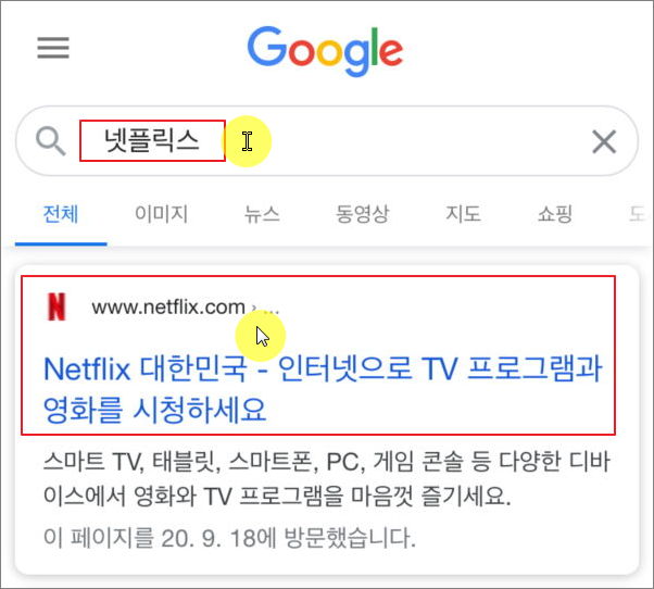 둘 중에 하나를 통해 넷플릭스 공식 사이트에 접속해 주세요.