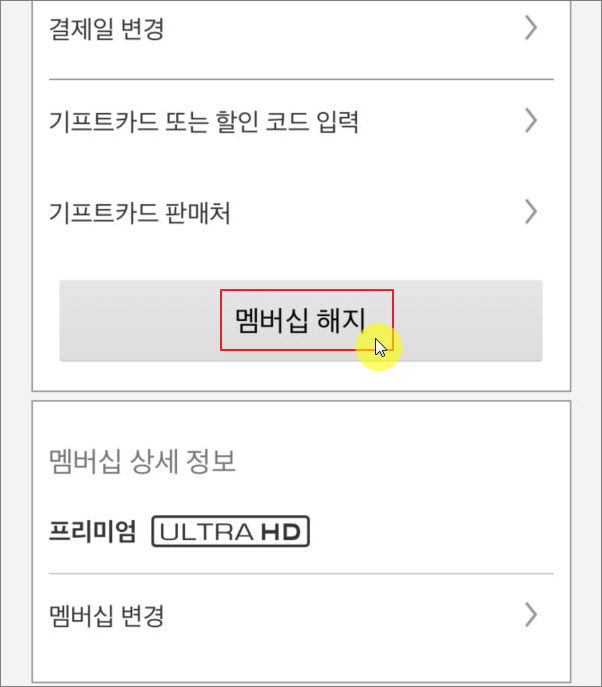 그 아래를 보면 멤버십 해지 버튼이 있어요.