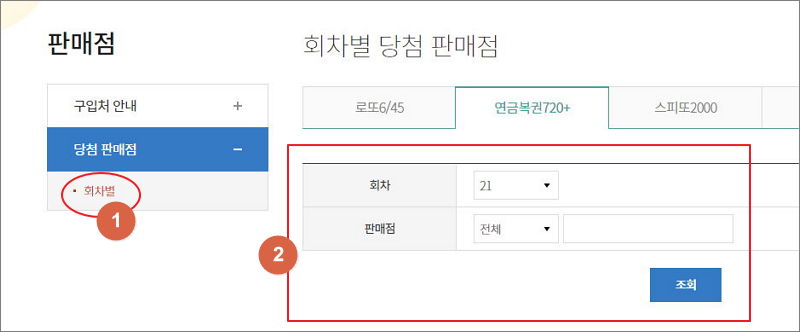 더 나아가 회차별로 정리된 1등 판매점에 대한 정보를 얻을 수 있는 곳이기도 하죠.