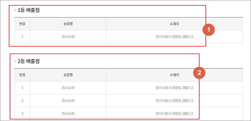 회차를 지정하면 해당 회차에 1등과 2등을 배출한 판매점에 대한 정보를 얻을 수 있어요.