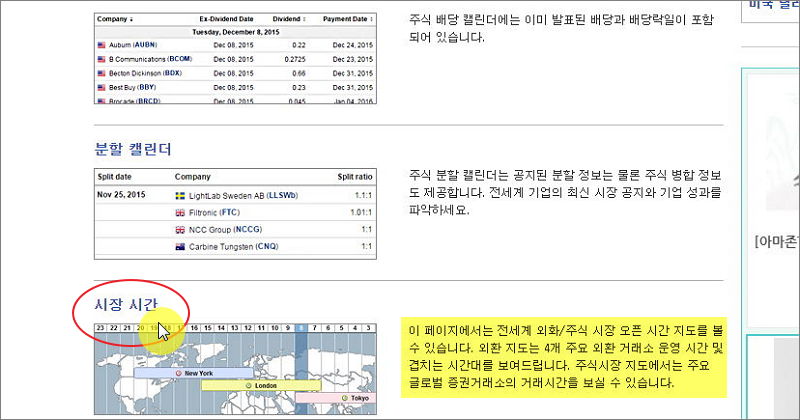 ▲ 마지막에 있는 [시장 시간] 서비스 클릭