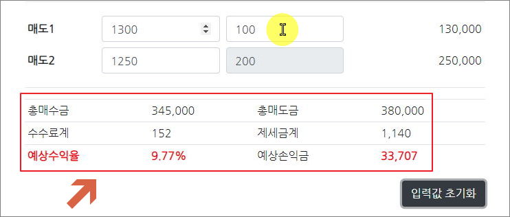 ▲ 매도 금액 입력 & 결과 확인