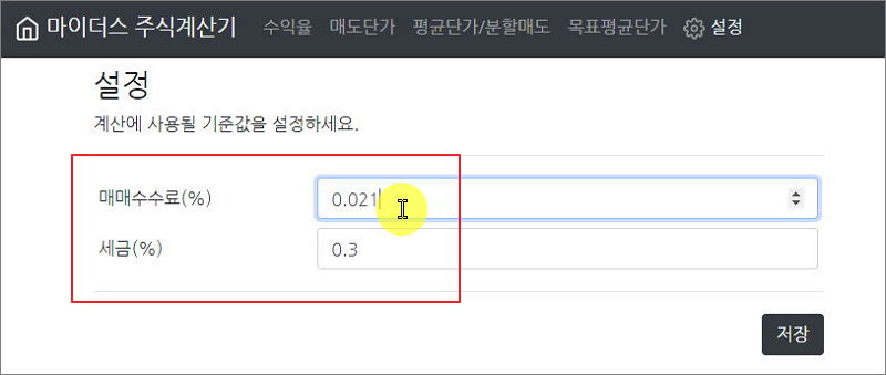 ▲ 매매 수수료 및 세금 입력