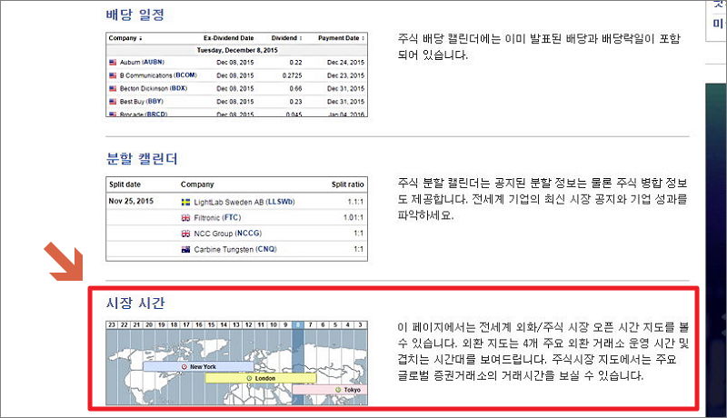 해당 사이트에서 세계 증시 또는 거래소에 대한 개장시간이나 운영 현황을 알아보려고 하는데요.