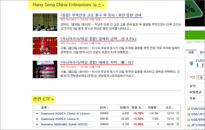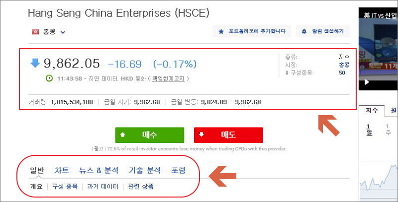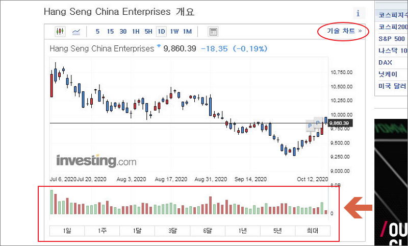 ▲ 홍콩 HSCEI 지수 조회 페이지