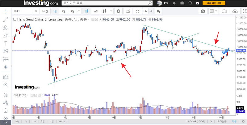 홍콩 HSCEI 차트는 2가지 버전이 있는데요.