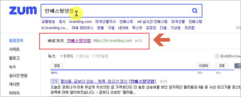 ▲ 인베스팅 닷컴 접속