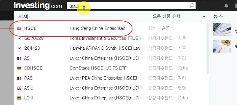 사이트 상단에 있는 검색창에 "HSCE"를 입력하면 되거든요.