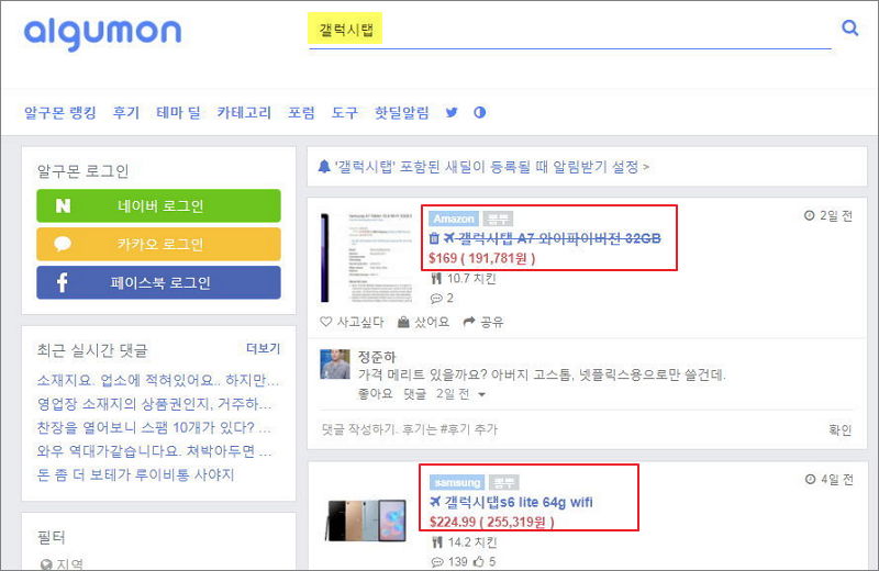 저는 가성비 높은 태블릿 pc를 찾거나 가격을 비교할 때 알구몬 사이트를 이용해요.