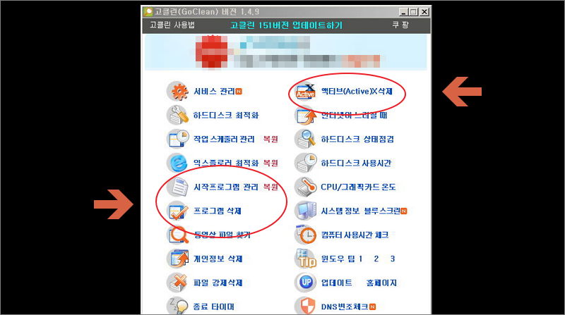 ▼ 가장 먼저 엑티브X 프로그램 삭제 서비스입니다. 보통 은행이나 관공서 사이트에 접속할 때 엑티브X 프로그램이 설치되곤 합니다. 이러한 프로그램은 컴퓨터 보안을 위해 필요합니다. 하지만 평소에는 컴퓨터를 느리게 만드는 요인이 될 수 있습니다. 필요할 때 설치하고, 평소에는 삭제를 해놓는 것이 컴퓨터 속도 향상에 도움이 됩니다.