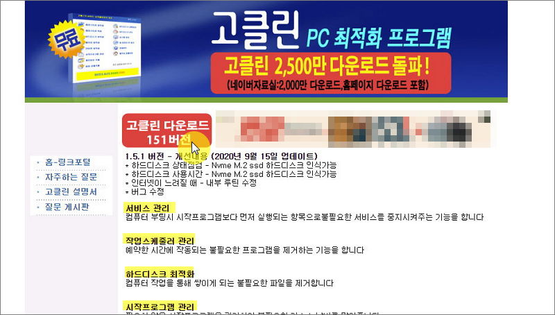 ▼ 보통 이렇게 느려진 현상은 컴퓨터에 설치된 프로그램이나 불필요하게 쌓여 있는 파일이나 설정 때문입니다. 이러한 것을 깔끔하게 정리하기 위해서 최적화 프로그램을 사용해 보겠습니다. 최적화로 유명한 고클린을 이용하면 됩니다. 무료로 사용할 수 있고, 제작사 사이트인 고베스트에서 쉽게 다운 받을 수 있습니다.
