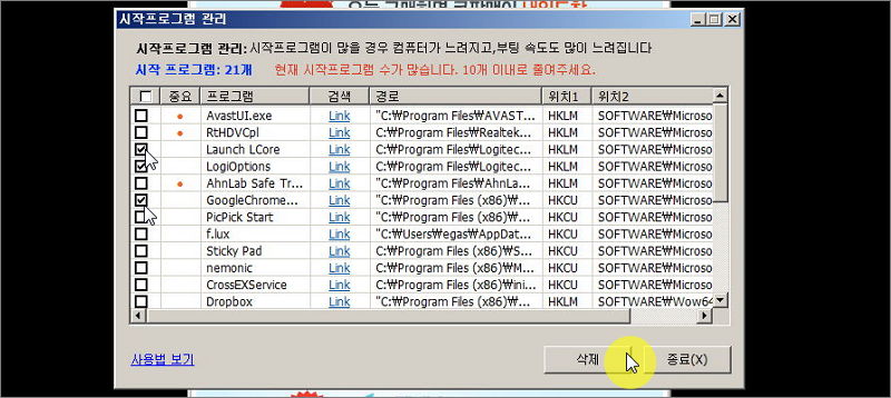 프로그램으로 컴퓨터가 느려졌을때 간편하게 해결하기.